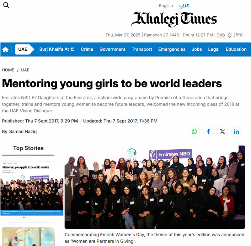 Emirates NBD E7 Daughters of the Emirates, a nation-wide programme by Promise of a Generation that brings