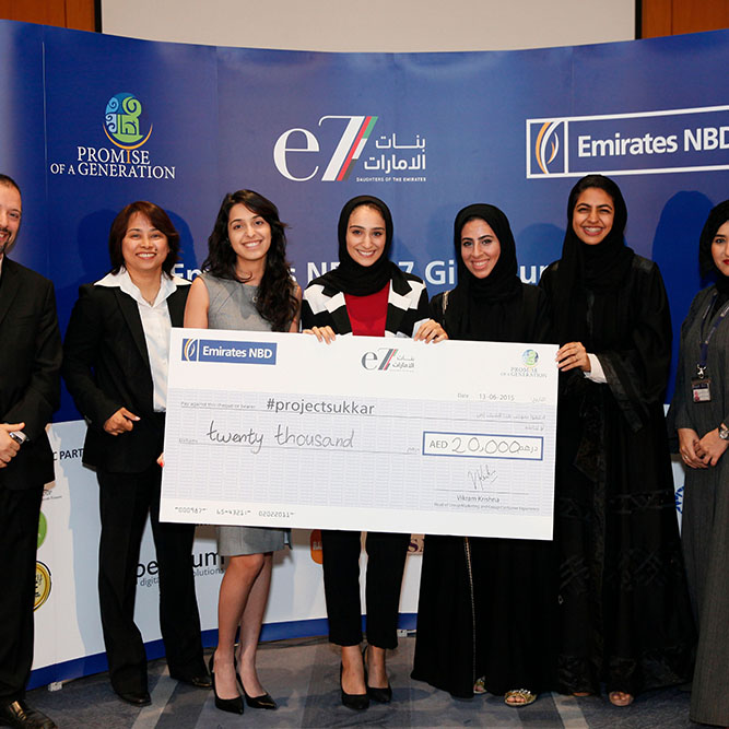 e7 Daughters of the Emirates بنات الإمارات is a year-long program and every year, 35 participants are inspired by community leaders, trained in project development and design thinking, connected to mentors, awarded project seed funding and supported with ongoing learning opportunities.