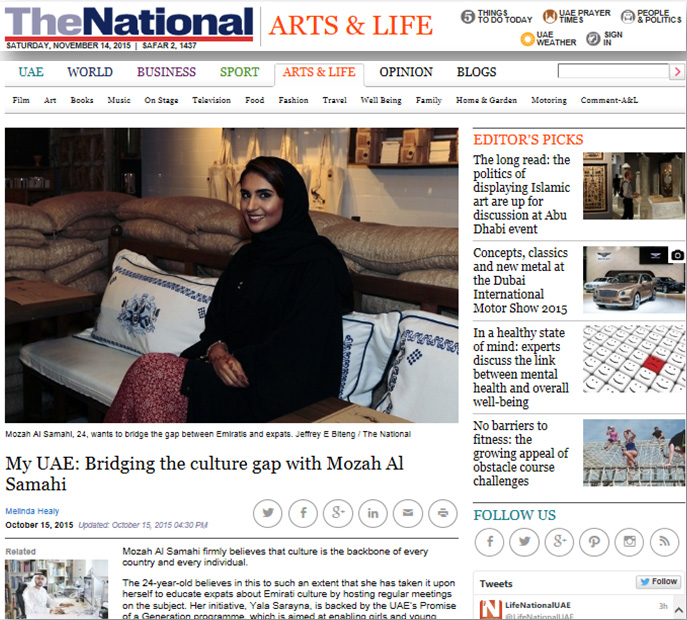 Bridging cultural gaps by sharing Emirati culture with young Emiratis, UAE residents and visitors through events and social media. See Yala Sarayna in the National